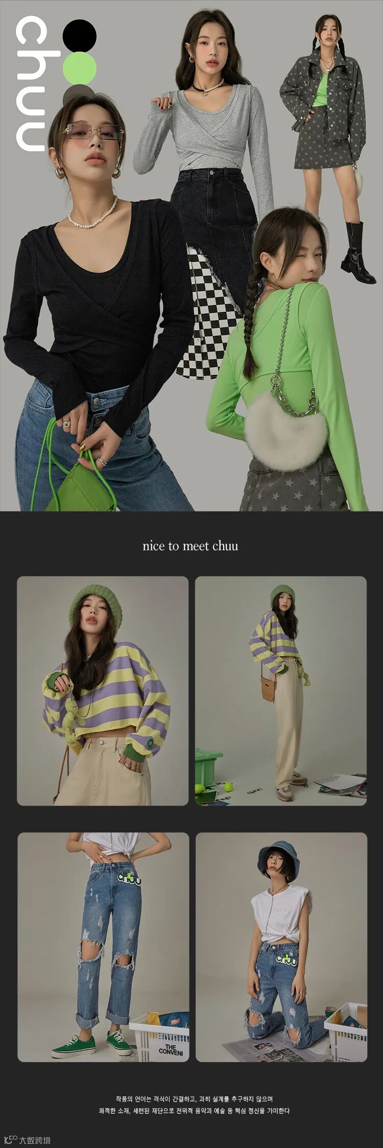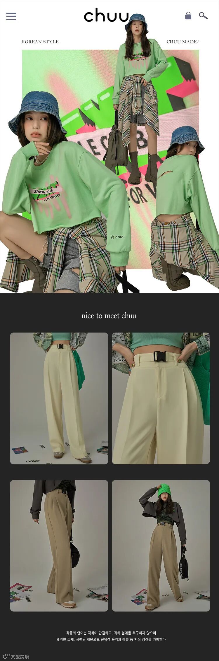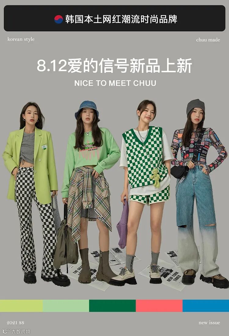 chuu,韩国本土网红潮流时尚品牌。2012年创立于韩国首尔。甜辣,轻运动,高调张扬的自我穿搭方式。