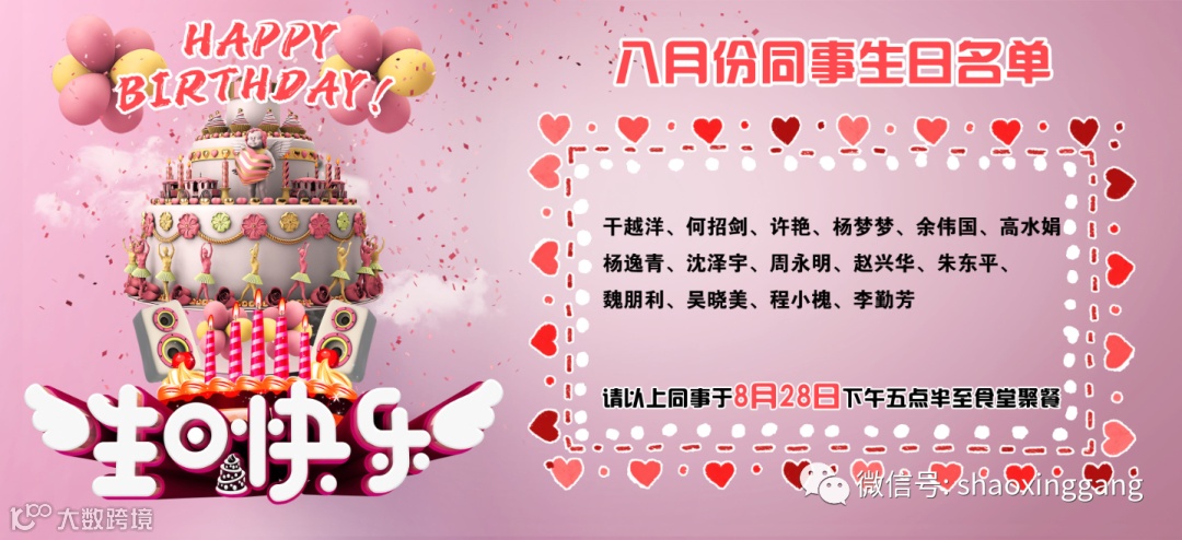 8月28日晚,在综合管理部的安排与组织下,绍兴港为8月份生日的员工开展了一场温馨、别致的生日会,在给大家带去满满幸福感的同时,也为公司文化增添了浓墨重彩的一笔。