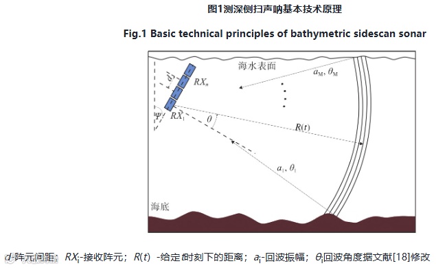 测深侧扫声呐的侧扫几何结构形成了非常宽的扫测视野,并提供了更宽的水深条带夏盖宽度,从而提高了在浅水区域的调査效率。然而,传统的测深侧扫声呐极易受到水中复杂噪声、混响、多路径回波信号等因素的干扰,实现精确测深一直是一个难点。此外,该类型声呐的侧扫几何结构中央波束方位估计精度差,导致了声呐正下方天底部位数据误差较大、存在探测盲区等系列问题出现,近年来,为提高测深侧扫声呐探测精度,结合束控多波束测深声呐中的多通道接收基阵和相干多波束声呐中的基于相位信息的估计方法,测深侧扫技术得到了快速发展。