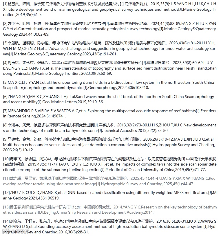 来源:测深侧扫声呐在近岸海洋工程中的应用——以海底管道调查为例[J].海洋地质前沿,2025,14(11):47-57.
