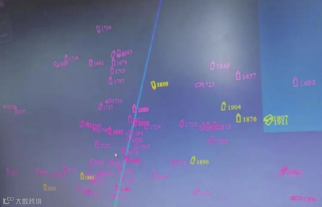 图5 试验海域碍航船只众多(粉色为确认目标)