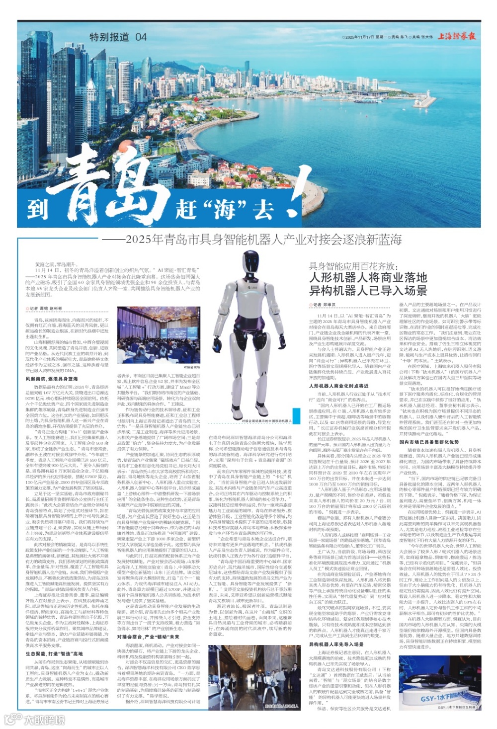 从前沿布局到生态聚能,从场景赋能到协同共赢,青岛,这座“向海而生”的城市正以人工智能、具身智能机器人产业为支点,撬动新质生产力发展。这种转变不是偶然,而是城市产业演进的内在逻辑使然。