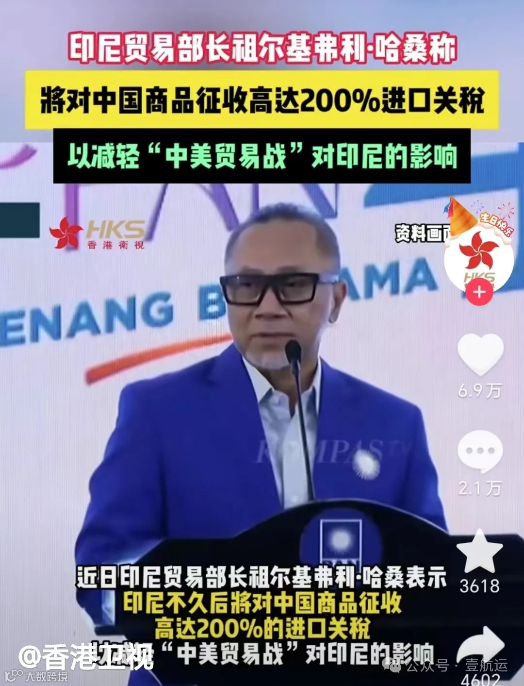 ▲印尼突然宣布拟对中国商品大幅加税(香港卫视报道截图)