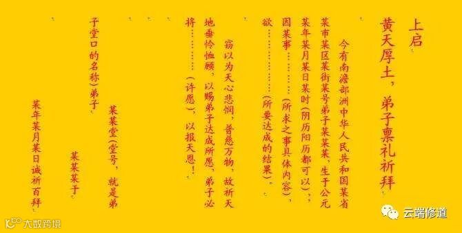 表文,通过将所求的事由,存思天神恩佑,书之于纸,彻于琅函,焚化后由神职司四值功曹、飞云捧送天尊等送往天庭,达成人神沟通的愿望,以获取所求之愿。在道教祈福法会中,经常会看到很多信众升疏文祈福,就是这个道理。这种升疏文祈福的方式,最早可追溯至祖天师时期的「三官手书」。