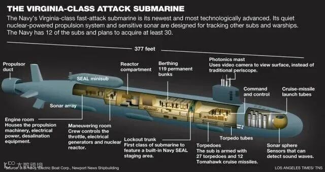 海军是美国维持世界霸权最重要的工具,这一点无容置疑的,核潜艇相对来讲没有航母那么高调和张扬,但其质量,数量,技术含量,以及隐蔽性和更新速度奠定了美国海军综合实力的基石,压舱石。关于该级核潜艇,上一篇已经作了大致上的描述,这里就不赘述了。这里大致这么排布:先看几个细节,是对上篇的补充,然后是具体各艘潜艇的一些细节,都是美军军网上所公布的。