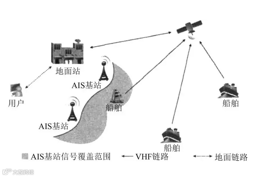 AIS系统(Automatic Identification system,船舶自动识别系统)工作于甚高频(VHF)频段,在船-船、船-岸之间采集和交换船舶实时位置、航向、航速等船舶航行动态信息,船舶尺度、所载货物等船舶静态信息和相关安全信息。