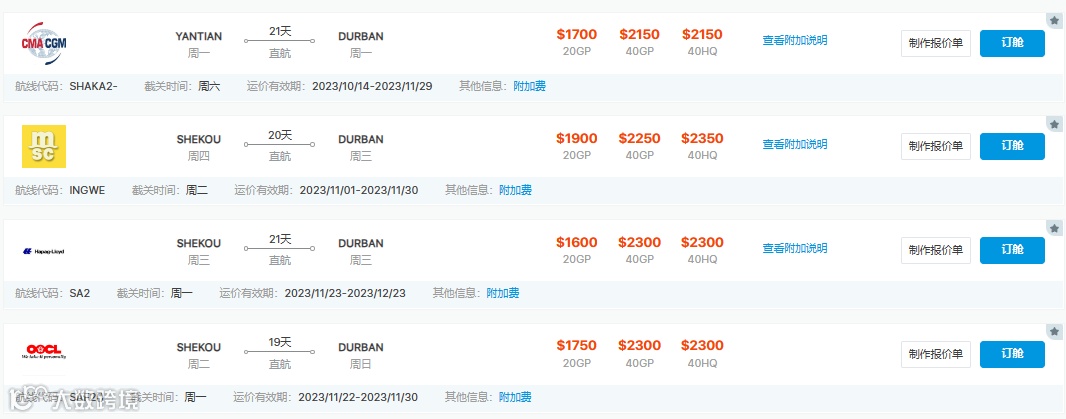 鉴于德班港的情况,马士基于11月初对从东非和西非以外的目的地运往南非的集装箱征收每集装箱200至400美元的拥堵费。MSC地中海航运公司紧随其后,征收了类似的拥堵费。