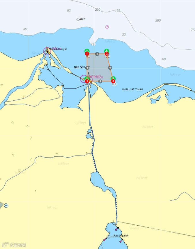 → 31.233333° N, 32.543667° E.点 4 — 31°14.00′ N , 32°16.00′ E