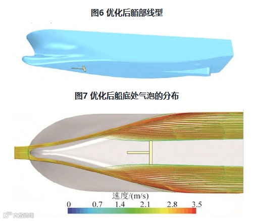 (2)利用CFD进行数值模拟,对艏部线型进行有针对性的优化,使艏部线型更加平稳光滑,且艏部船体外壳流场能最大限度避开船