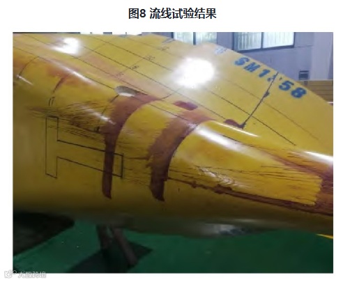 根据优化后的线型,在中国船舶科学研究中心进行全海深多波束流线试验,对优化后的线型进行试验验证。图8为流线试验结果。由图8可知,试验结果与CFD模拟结果相近。