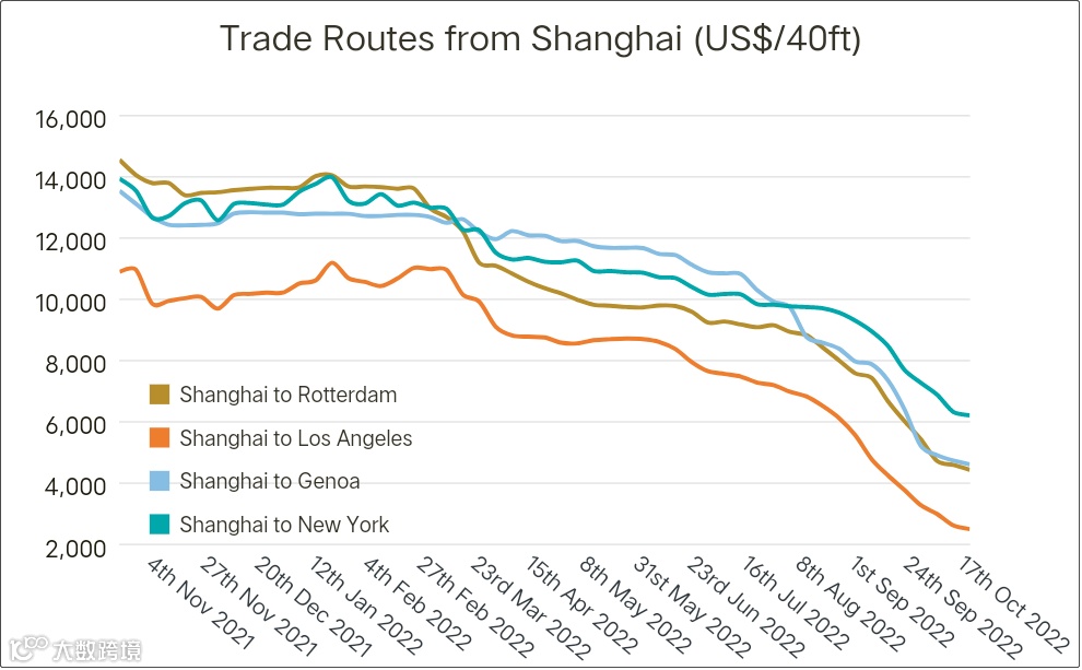 大型货代公司负责人指出,目前运价逐渐趋稳,主要是货量有在增加,但是增幅有限,还不足以让欧美主航线运价反弹,尤其是像英国通膨那么严重,不过造成通膨两大因素,运价部分已经大幅下跌。