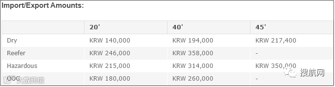 收费标准为:集装箱毛重超过20吨且低于27吨时,每20'干箱200美元;集装箱毛重等于或超过27吨时,每20'干箱500美元。