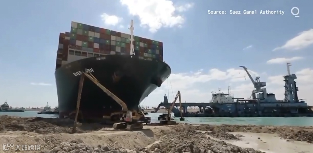 ③利用潮汐:气象局预测由于潮汐作用,苏伊士运河附近水位升高至2.14米,比搁浅时上升约50公分。当地时间28日晚上,救援方面的负责人表示,随着水位一夜间飙升,船慢慢恢复了浮力。在当地时间29日上午,大家迎来了船身已向正确航行方向调整了80度的好消息。