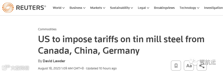 美国一家钢铁制造商Cleveland Cliffs提出申请,指控外国在马口铁行业进行倾销,导致近年来美国关闭了几家马口铁生产厂,因此案件于今年2月启动。