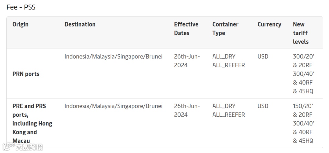 6月11日,马士基宣布将自2024年6月26日起对从中国所有港口(不包括中国台湾)至印度尼西亚/马来西亚/新加坡/文莱的干货集装箱和冷藏集装箱实施PSS。详情如下: