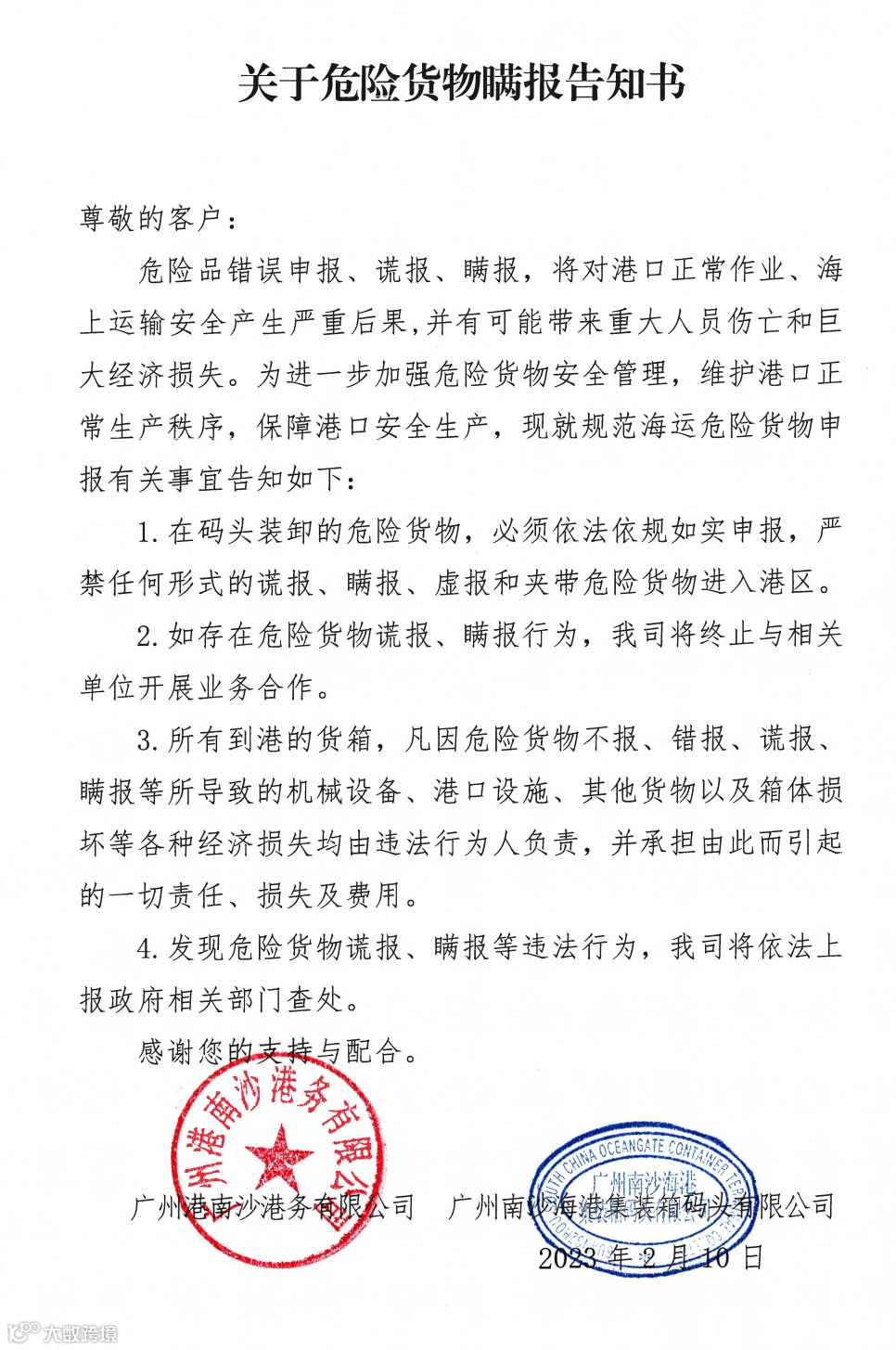 --发现危险货物谎报、瞒报等违法行为,我司将依法上报政府相关部门查处。”