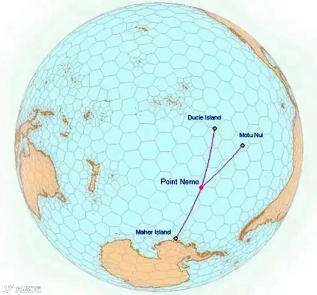 当我们通过卫星定位,从地球外观看尼莫点时,距离尼莫点最近的陆地是三座遥遥相望的岛屿,它们分别是南极洲的马厄岛,东北方向复活节群岛西南角落里的莫图努伊岛和北方皮特凯恩群岛里的迪西岛。