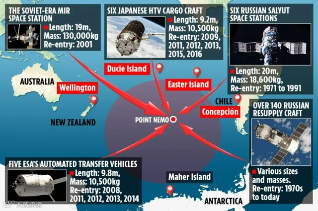 除此之外,还有日本的7艘飞船和欧洲宇航局的4艘飞船,我国也选择将退役的天宫一号和天宫二号空间站坠落于此,接下来国际空间站退役后也将选择尼莫点成为墓场。