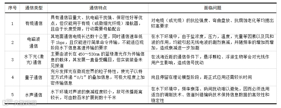 Table 2 Analysis of main mode and characteristics of underwater network communication