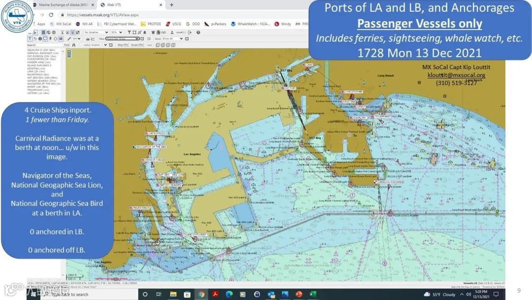 南加州航运交易所于11月15日对锚地等泊排队规则进行了调整。按照以往规则,待入港船舶可以在距离洛杉矶港和长滩港20海里以内的锚地待泊。过去半年港口拥堵加剧导致待泊区域过度拥挤,出于安全和空气污染的考量,新规规定,除特殊情况外,等泊船舶只能在距离加州西南150英里以及距离加州和墨西哥50英里外的海域等待,只有港口通知72小时内可以入港的船舶才被允许缓慢靠近港口锚地就近等泊。如此一来,货轮之间的行船间距拉大,也拉长了货物进港的速度,从而导致港口拥堵的局面进一步加剧。