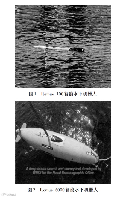2000 年,美国海军提出了 AUV 在军事应用方面的 7种使命和 4种作战能力,对关键技术进行了风险评估,描绘了 2030 年之前 AUV 的发展蓝图。Remus-100 和 Remus-6000 智能水下机器人[4]如图1和图2所示。