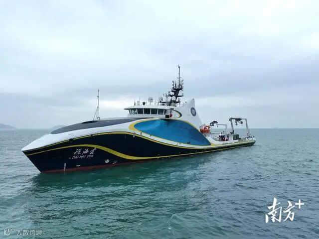 “珠海云”是全球范围内首艘具备自主航行功能的智能型科考船。船上装配的“直臂回转吊”,能在不停船的情况下,把放出去的无人艇进行快速回收,属于全球首创的领先装备。