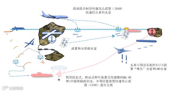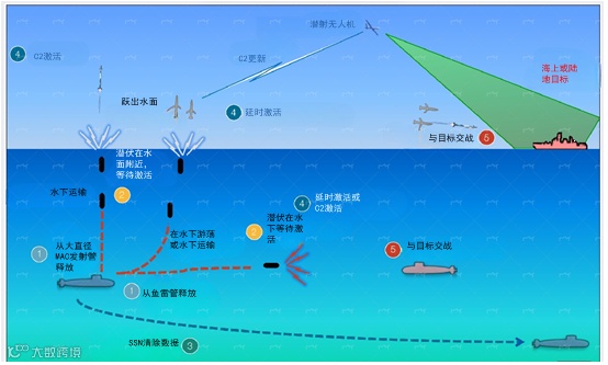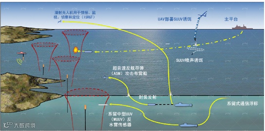 美国为了维持其水下优势,提出了基于无人平台的进攻性水下战,旨在改变美军潜艇的“独狼”战术,利用有人-无人潜艇编队攻入堡垒区。