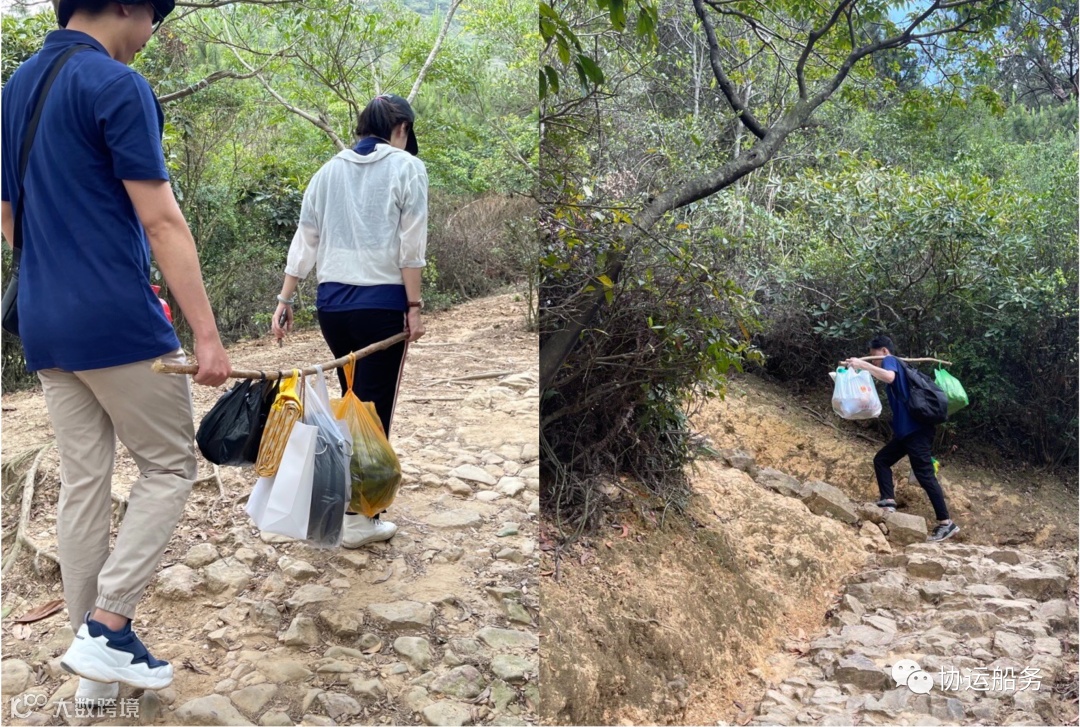 老规矩,分组登山,男女分配干活不累,男生们扛上食物等重物,女生们人手两瓶水,在拿些自己力所能及的小物件 轻松上阵。带着兴奋的步伐,踏上了登山之路。