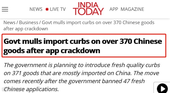 在中印边界冲突后,印度可谓小动作不断,在封杀中国数十款App后,日前印度拟再禁275款中国APP应用!28日,据“今日印度”媒体报道:在针对打压中国APP后,印度政府正考虑对370多种中国商品实施进口限制。