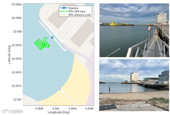 测试结果显示,行驶距离误差约为0.4%。图2显示了Blue ROV2在Scheveningen港自主运行,而图3和图4描述了演示的测试设置、ROV航行轨迹以及对TOPS不确定性预测的误差和不确定性评估。