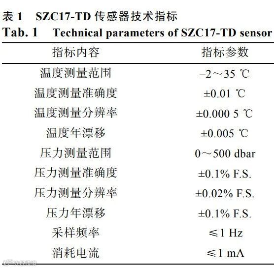 剖面数据采集装置控制系统硬件设计如图2所示,主要由电池组、DC-DC电源模块、温度深度(temperature depth, TD)传感器、485通信模块、MCU、SD卡、电源管理部分和外部传感器等组成。电池组选用的34615型一次性锂电池能量密度是常规可充电锂电池的3~5倍,容量达到42Ah,能够满足潜标对电池容量的需求;DC-DC降压模块采用了工业级MP1584降压芯片,输入电压达到28V,输出电压为5V,最大输出电流为3A,静态电流约100µA,满足控制系统功耗需求;TD传感器采用国家海洋技术中心SZC17-TD型号传感器[15],功耗低、体积小、可直接通过串口获取温度和压力数据,其技术指标见表1;MCU1与MCU2均采用了意法半导体公司生产的STM32F103RET6单片机,包含5个串口通信接口,支持SPI、I2C、USB等通信方式,具有64KBRAM和512KBFLASH,主频最高可达72MHz,能够满足潜标计算任务需求;SD卡使用了闪迪MicroSD卡,容量为4GB;电源管理部分则是以P沟道金属氧化物半导体场效应晶体管(metal-oxide-semiconductor field-effect transistor, MOSFET)作为固态开关对TD传感器、485模块、SD卡、外部传感器等进行通断电的管理控制的总称。