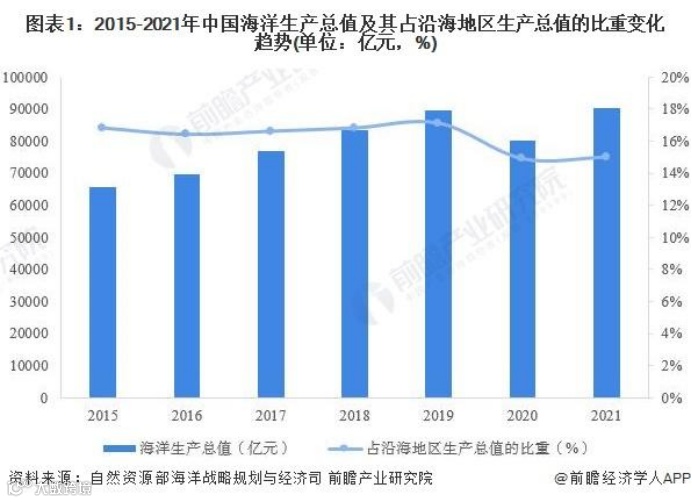 我国海洋经济不断增强,整体发展态势稳定。自然资源部发布的数据显示,2021年全国海洋生产总值首次突破9万亿元,达90385亿元,同比增长8.3%;2022年上半年海洋生产总值4.2万亿元,同比增长1.2%,海洋经济“企稳回升”态势明显。