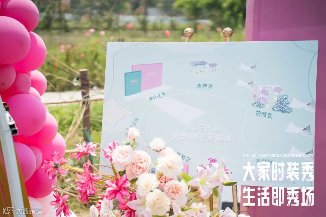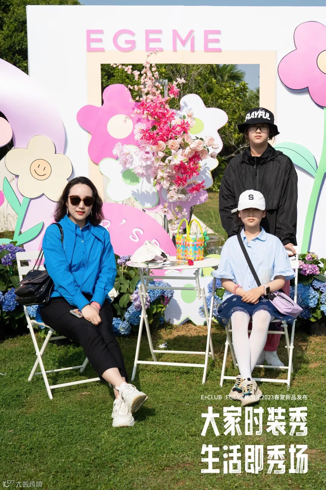 依加米2023春夏新品户外大秀和母亲节遇见,现场为大家准备了母亲节打卡区,邀请朋友们来一张户外全家福,晒图赢取消费券,迎来了很多家庭的打卡,背景墙主题也围绕了年度流行趋势色彩开展 ,围绕一圈绣球花在大自然中记录这美好温情的节日。