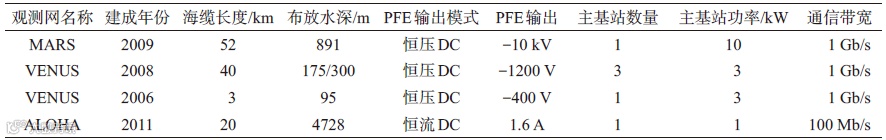 表2 典型海底广域观测网基本参数