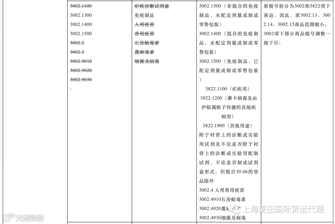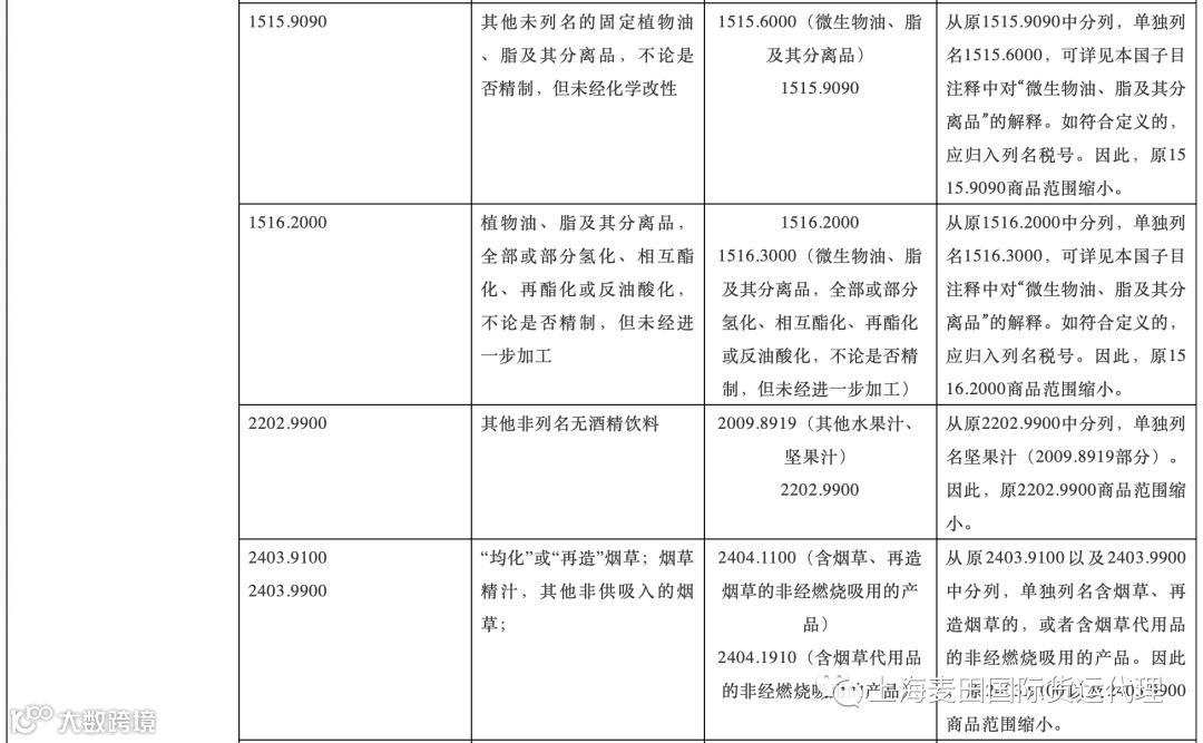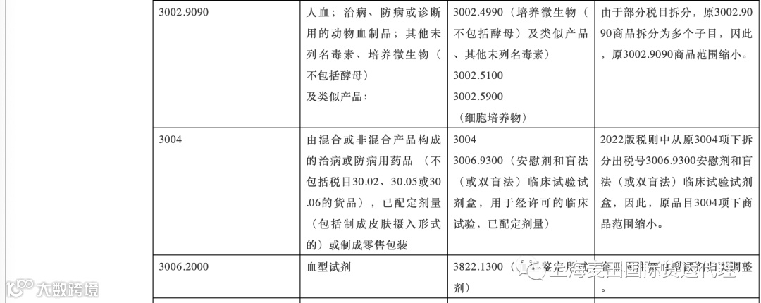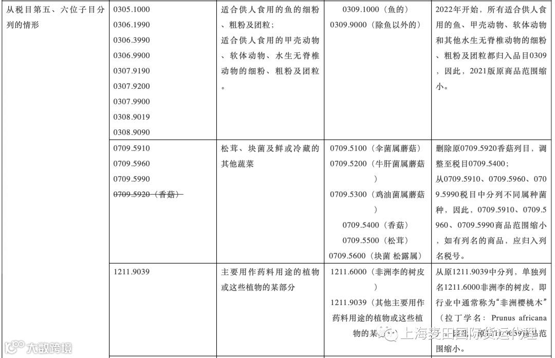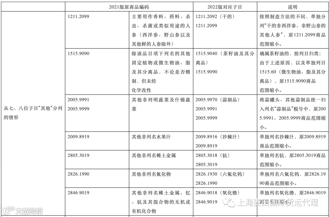 注意:下表中列出了本次调整中涉及面较大的商品范围,表格中未体现的不代表没有调整。申报时如发现税号不存在的,可以查阅《2021-2022税则转版对应表第一部分:税则税目税率转换》选择调整后的税号申报即可。