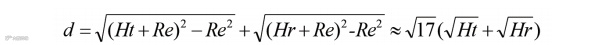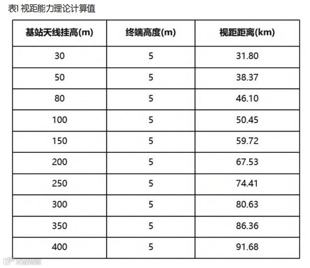 超远覆盖距离主要指的是视距传播场景,其有效覆盖范围取决于多种因素,包括:频段、传播模型、天线高度、基站功率、天线选型等;频段越低,天线海拔高度越高,基站功率越大,小区覆盖距离也就越远。其中,据传播模型理论可得视距能力理论值计算公式: