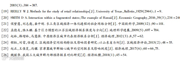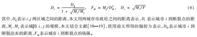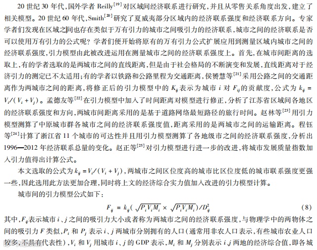 为了进一步分析上海、深圳对区域内其余城市的经济辐射力及经济之间的联系强度,同时总结了以往的研究,本文主要利用“断裂点”模型和“万有引力”模型来测度经济辐射力与联系强度值。“断裂点”