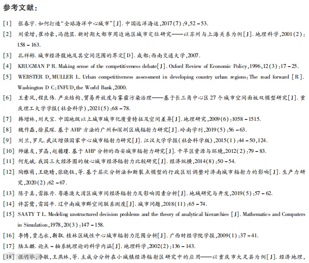 关键词:全球海洋中心城市;层次分析法;引力模型;综合辐射力;区域协调发展