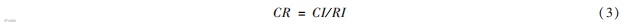 由于主观因素的限制,对于权重的计算结果是否合理还需要进行一致性检验。一致性检验使用 CR值进行分析,CR值小于 0.1则说明通过一致性检验,反之则说明没有通过一致性检验。检验使用公式: