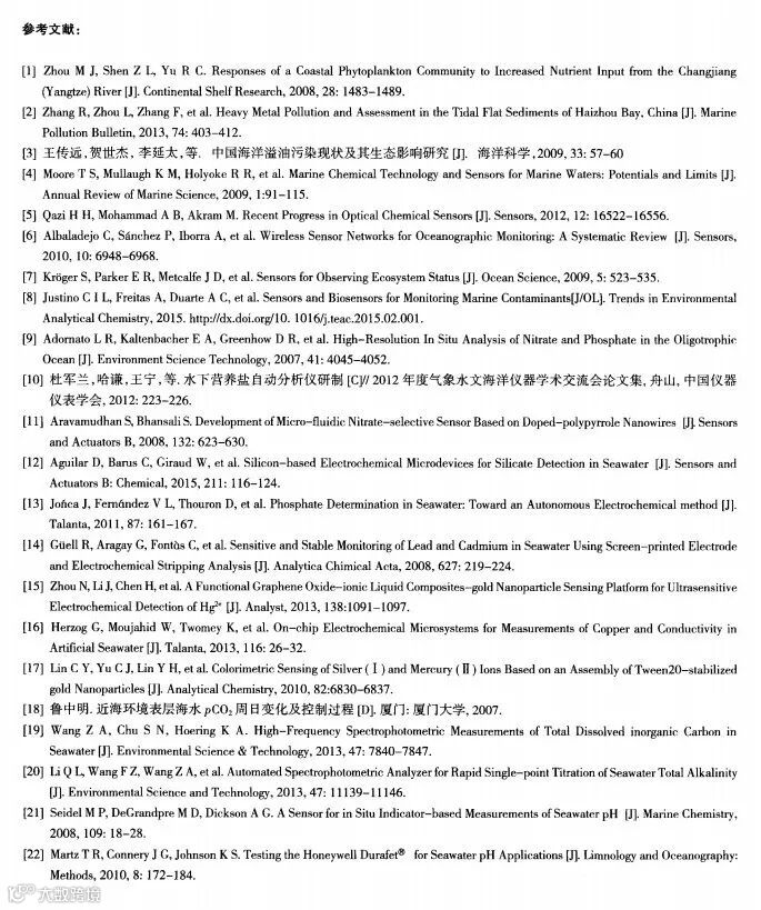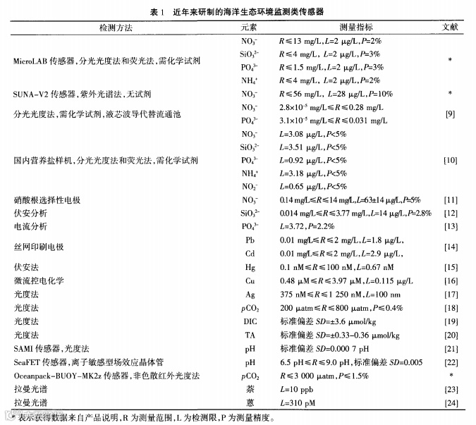关键词 :海洋生态环境;传感器;检测技术;研究进展