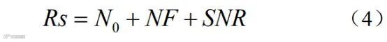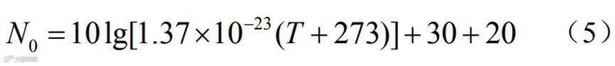 式中,N0为接收机的背景噪声,NF为接收机噪声系数,SNR为解调信噪比。接收机背景噪声通常在接收机热噪声的基础上提高20dB,如式(5)所示。