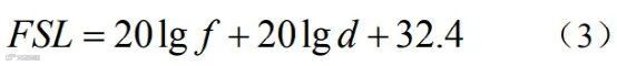 式中,Tx为浮标发射功率,Tg表示发射天线增益,T1为发射机内部损失,FSL为传播损失,Rg为接收天线增益,R1为接收机内部损失,T1+R1统称为链路损失,一般取4dB。无线电空气中的传播损失为[6]