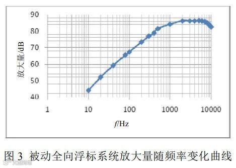 被动探测的声基阵有单水听器、矢量水听器和水听器阵。由于浮标结构紧凑,水听器和前放电路需一体化设计,海洋环境噪声的频谱特性、换能器灵敏度曲线和系统放大量一体设计,使系统的动态范围最大化。图3为某被动全向浮标预白化后电路总放大量。由于浮标在海洋背景噪声下工作,因此电路自噪声应低于深海一级海况。