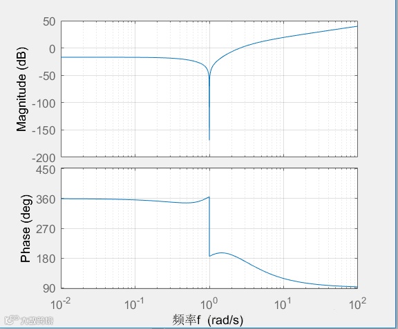 有的时候我们不需要bode图中的相角图,只想要频率图,只需要将bode(G) 换成