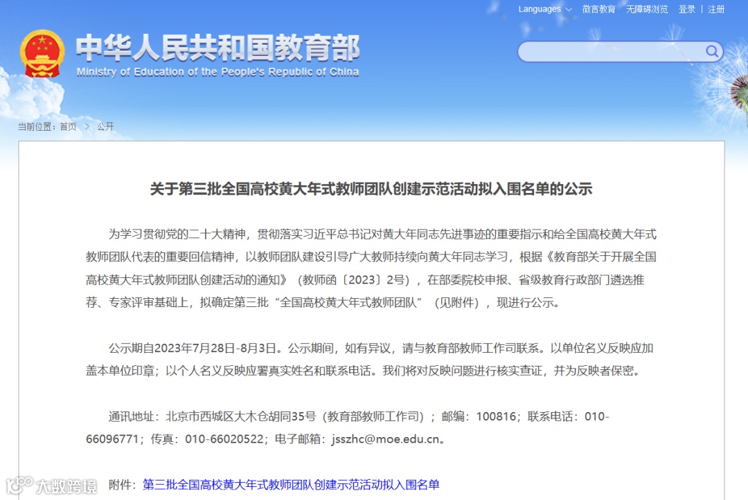 第三批“全国高校黄大年式教师团队”拟入围名单
