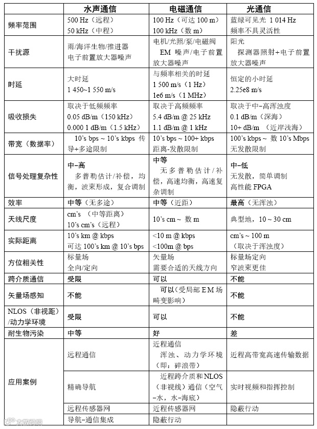 8 水下信号传输方法的比较