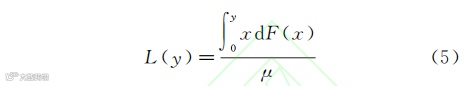 洛伦兹曲线原本用于比较和分析一个国家在不同时代或者不同国家在同一时代的财富不平等[10],可以直观描述收入分配的平均程度,其弯曲程度反映了收入分配的不平等程度,弯曲程度越大,收入分配越不平等,反之亦然。洛伦兹曲线的数学表达式如下:
