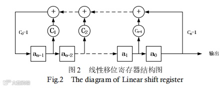 利用移位寄存器和反馈逻辑可以产生伪随机码。线性反馈移位寄存器结构如图 2 所示。