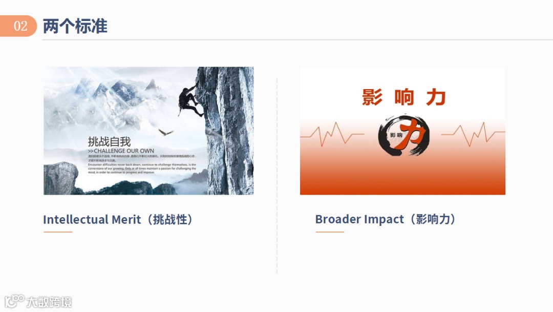 确立目标之后,就是选择具体的研究方向,在此过程中,要遵循两个标准,一是Intellectual Merit(挑战性),二是Broader Impact(影响力)。