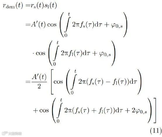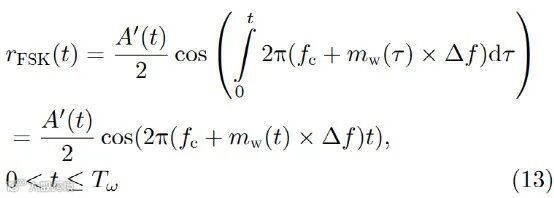 为低频分量,是期望获得的用于信息解调的频移键控信号rFSK(t);而后一项